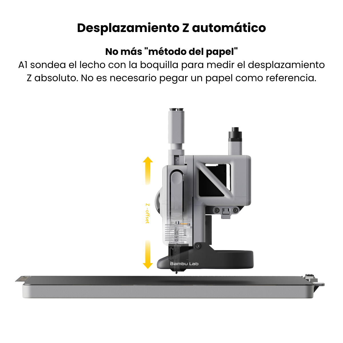 La A1 es una FDM de cama móvil (bedslinger) con velocidad y calidad estilo CoreXY, calibración totalmente automática y control avanzado de flujo. La versión Combo incluye AMS lite para impresión multicolor de hasta 4 materiales. Volumen 256 x 256 x 256 mm, boquilla 300 °C, cama hasta 100 °C, y cancelación activa de ruido (≤48 dB en Modo Silencioso).
