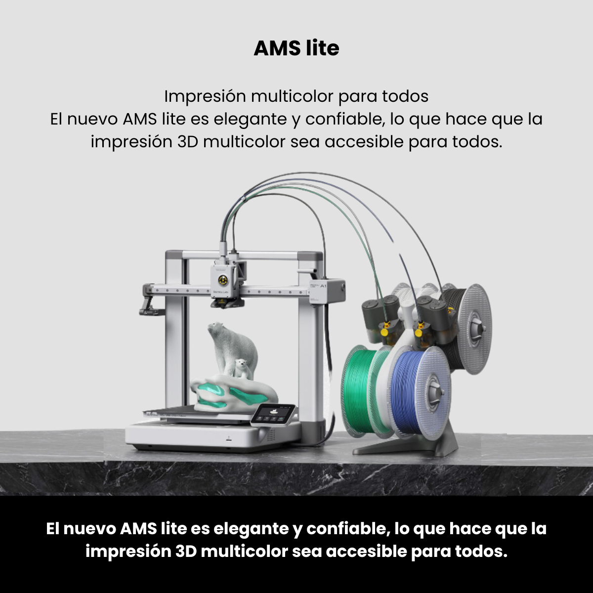 Impresión multicolor (AMS lite) La A1 Combo incluye AMS lite (hasta 4 colores). En A1 estándar es opcional.
